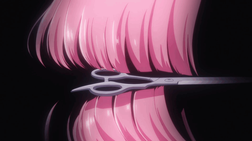 長い髪を切る象徴的なイメージのインサートで、ナレーションだけでなく視覚的にお話を説明してくれるのが最高!