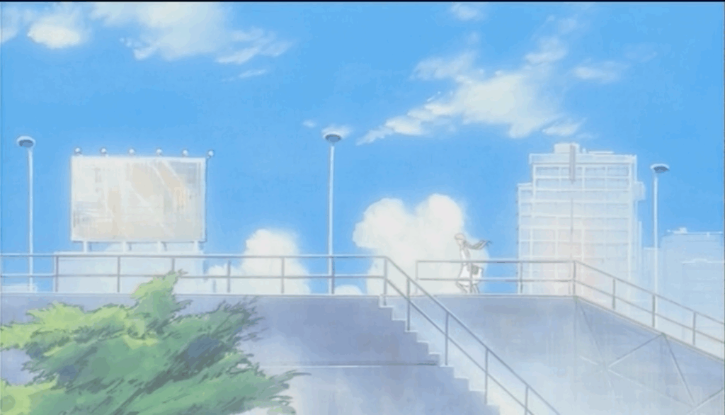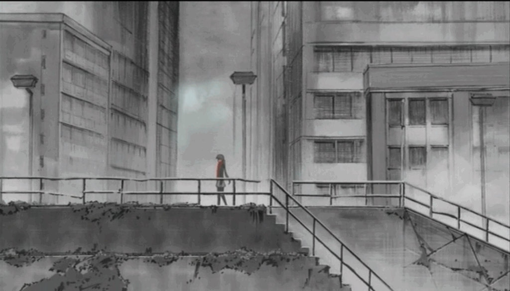 夢に溢れた「過去の自分」と、憂鬱を抱えた「今の自分」を、見事に「歩き」の動作と背景で完璧に繋いでいますね!