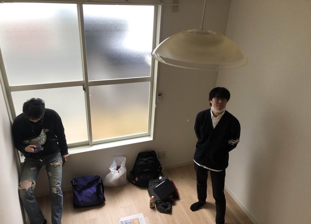 一人暮らし初日で家具も何も無いのにnazca君が遊びにきてくれました、今では勝手に入ってきます。