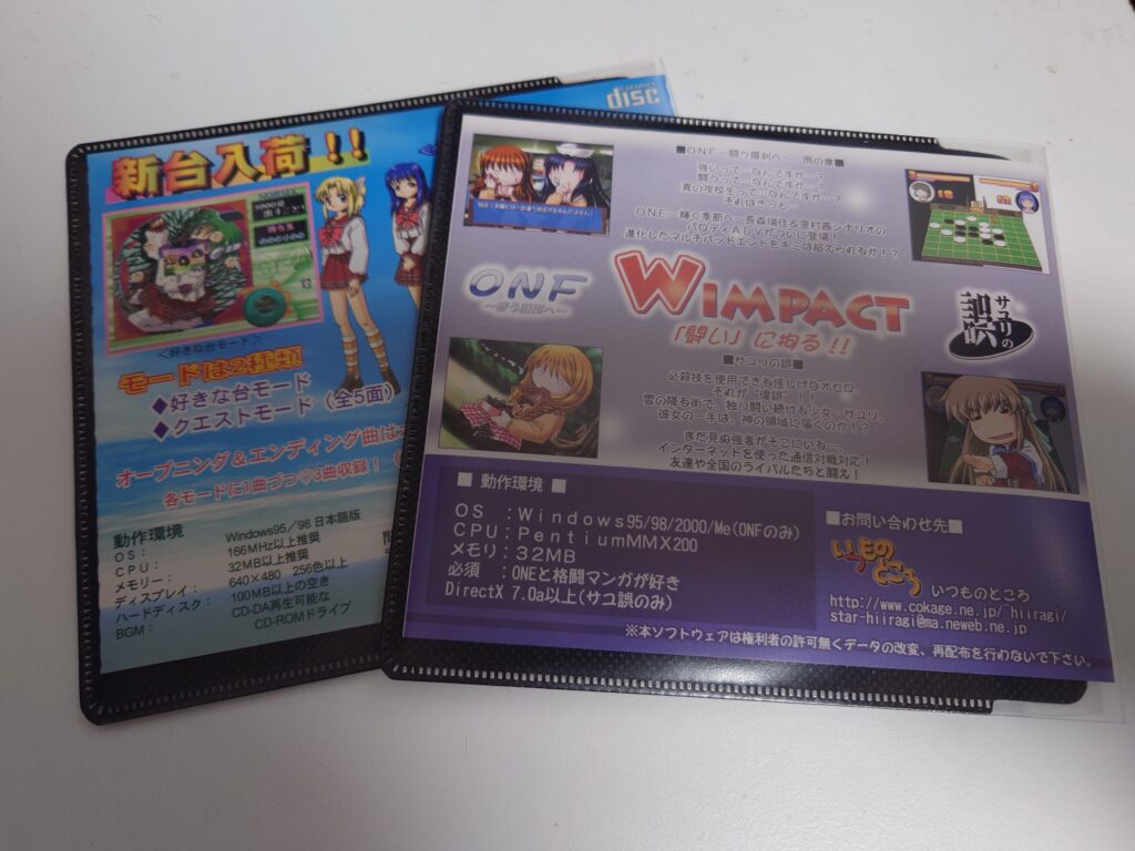 囲碁ではなくオセロゲームの『サユリの誤』、『ONE』のパロディADV『ONF』が入った同人ゲーム二個入りのお得パック!